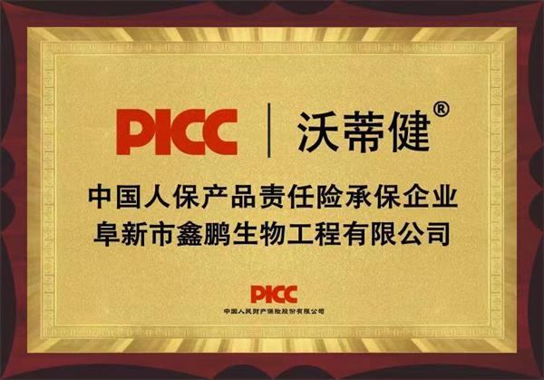 阜新市鑫鵬生物工程有限公司旗下沃蒂健、黑晶尖、芯霸、鑫鵬沃普爾、田寶畝、久畝神、九畝神、炭精神、稔如意、棚地神、松峰山、金禾財有根等系列產(chǎn)品,順利通過PICC中國人民保險審核,為企業(yè)全線產(chǎn)品承保產(chǎn)品責(zé)任險,證明公司產(chǎn)品的真實(shí)、合格,也標(biāo)志著阜新市鑫鵬生物工程有限公司為消費(fèi)者提供安全保障的決心。